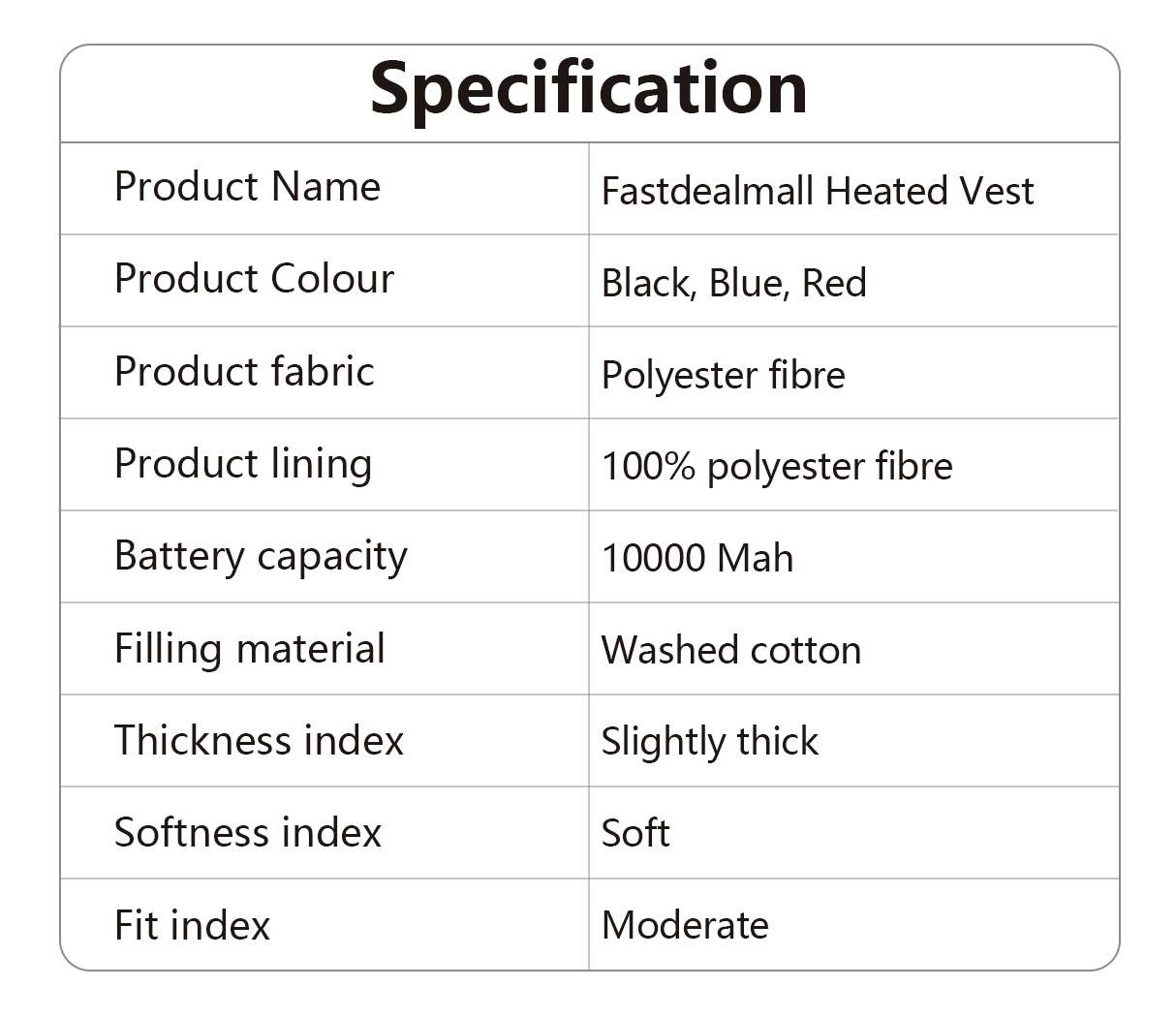 Fastdealmall prioritises portability, practical design, and reliable warmth. Core features include rapid heating, adjustable temperature settings, and large-area coverage – providing effortless, instant warmth anytime, anywhere.