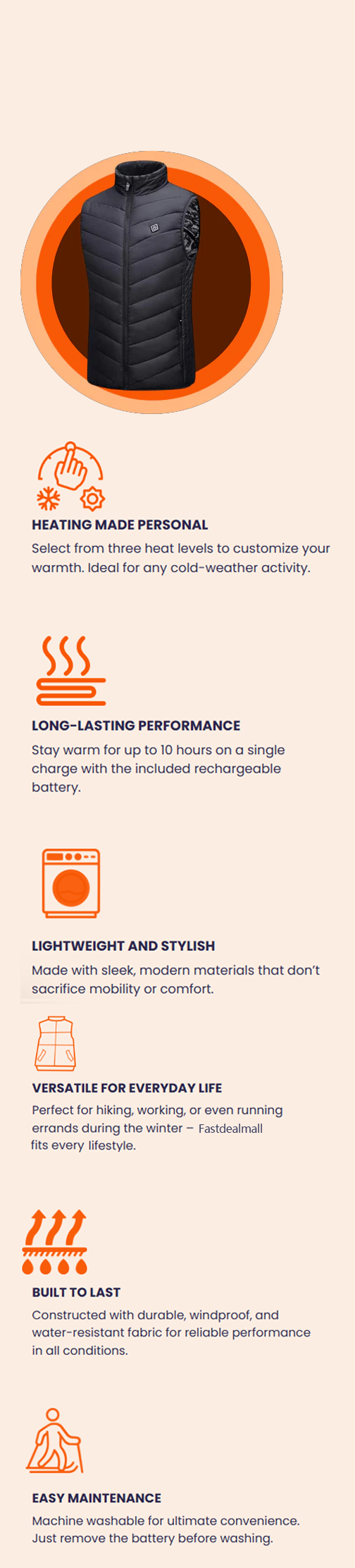 The ultimate winter essential: warmth, smarts, and style—all in the Fastdealmall Heated Vest.