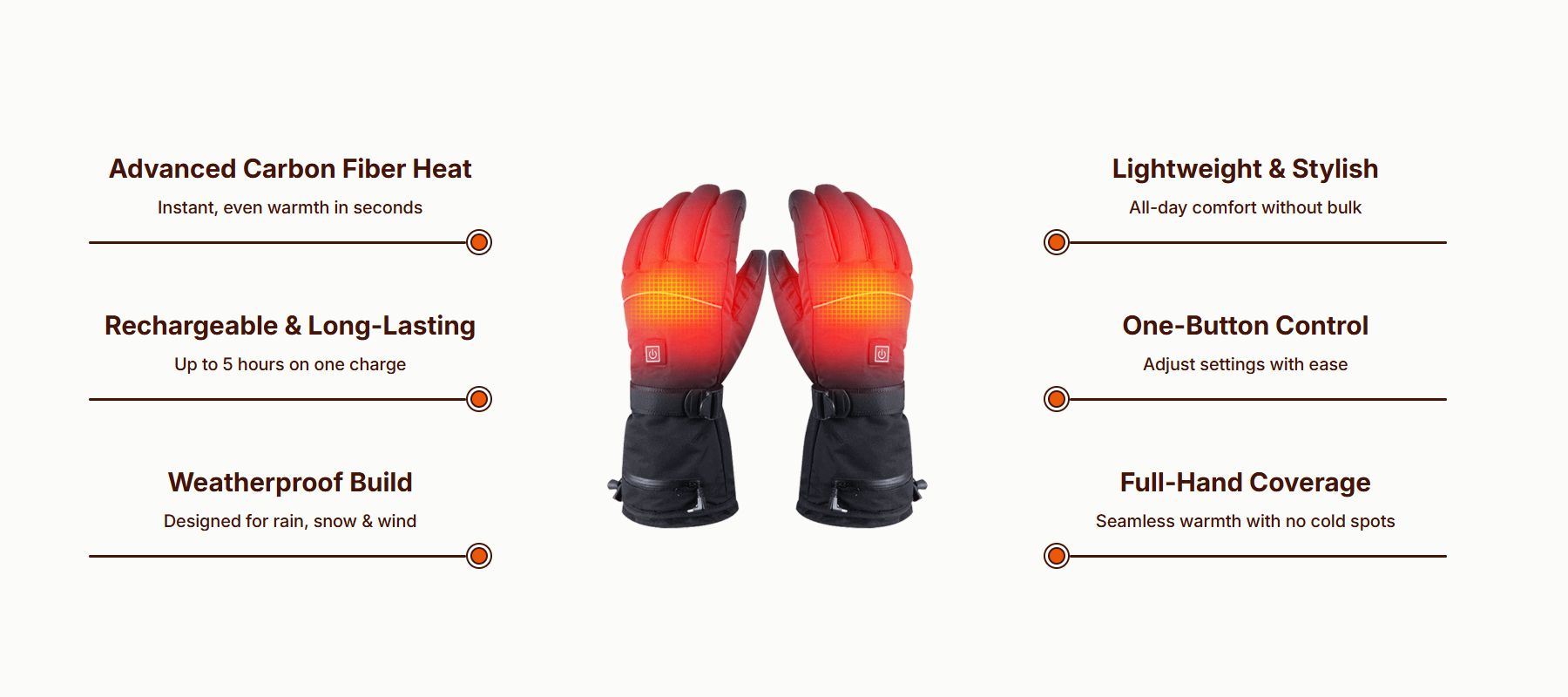 - Full-Finger Heating — Keeps all your fingers warm and comfortable in the cold.